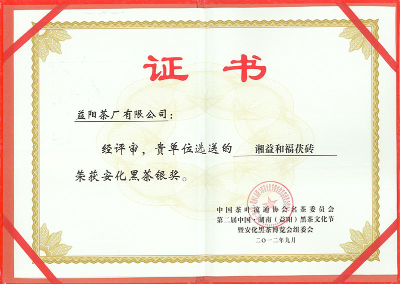 2012年 第二屆中國(guó)湖南黑茶文化節(jié)銀獎(jiǎng)(和福)