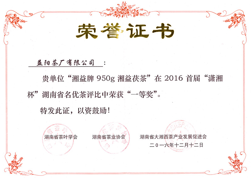 “瀟湘杯”名優(yōu)茶一等獎(jiǎng)
