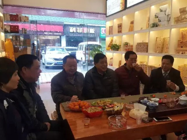近日,政協(xié)安化縣委員會原主席、安化縣茶業(yè)協(xié)會會長李俊夫先生一行在公司常務(wù)副總經(jīng)理徐迪軍先生的陪同下來到湘益茯茶專賣店視察。專賣店負(fù)責(zé)人諶如紅女士說道:“我自己是地地道道的安化人,以前也從事茶葉行業(yè)的相關(guān)工作。在一次機(jī)緣巧合下我接觸到了湘益茯茶這個品牌,當(dāng)時就覺得這茶不錯,在當(dāng)?shù)氐钠放浦纫哺?,我于是就開始從多方面的了解湘益茯茶這個品牌,到最后,我也成了湘益茯茶的一員,把湘益專賣店開在了自己的家鄉(xiāng)安化。在公司領(lǐng)導(dǎo)及縣領(lǐng)導(dǎo)的大力支持下,本店近期銷售情況良好,進(jìn)店品茶的消費者很多,有很多慕名而來的湘益粉絲,茯茶氛圍很濃,我對湘益茯茶在安化生根發(fā)芽充滿信心?!崩羁》驎L說:“湘益茯茶是黑茶行業(yè)的一個大品牌,此次來安化開設(shè)專賣店,對安化黑茶行業(yè)的健康發(fā)展起到了積極的推動作用?!惫境?wù)副總經(jīng)理徐迪軍先生說:“安化,是大眾茶文化濃厚、湖南黑茶交易與集散的重鎮(zhèn)。作為湖南黑茶面向全國乃至全世界的重要窗口,也一直是湘益茯茶十分重要的區(qū)域市場,公司將大力支持安化湘益專賣店的發(fā)展,也希望安化縣相關(guān)領(lǐng)導(dǎo)、茶業(yè)協(xié)會以及茶界同仁能夠一如既往的關(guān)注湘益,為湘益在安化迅速發(fā)展給予指導(dǎo)和幫助?!?