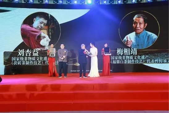 在茶香悠揚的茶藝表演之后,“中國好茶,黑白對話”高峰論壇特制紀念茶正式發(fā)布,成為與會嘉賓關注和熱議的話題。國家非物質文化遺產茯茶制作技藝代表性傳承人劉杏益大師為大家講解了研發(fā)制作理念,其健康、高品質的特點贏得大家的高度認可。隨后,劉仲華院士與兩位大師共同在茶上簽名,將現場氣氛推至高潮。