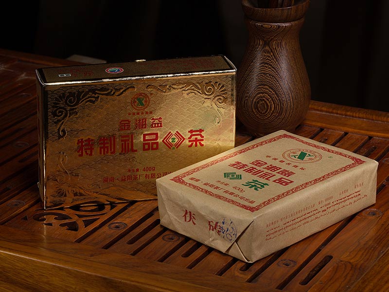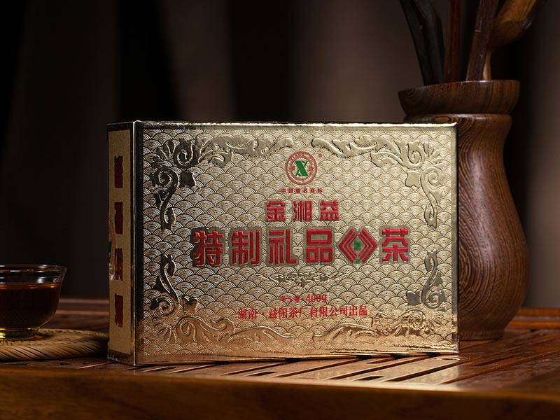 2002年,我公司通過(guò)改進(jìn)生產(chǎn)工藝和技術(shù)設(shè)備,研制開(kāi)發(fā)了“金湘益”特制禮品茯茶。該產(chǎn)品采用優(yōu)質(zhì)黑毛茶為原料,科學(xué)精制而成,具有形美、質(zhì)佳、味香、金花普茂、滋味醇和的特點(diǎn)。