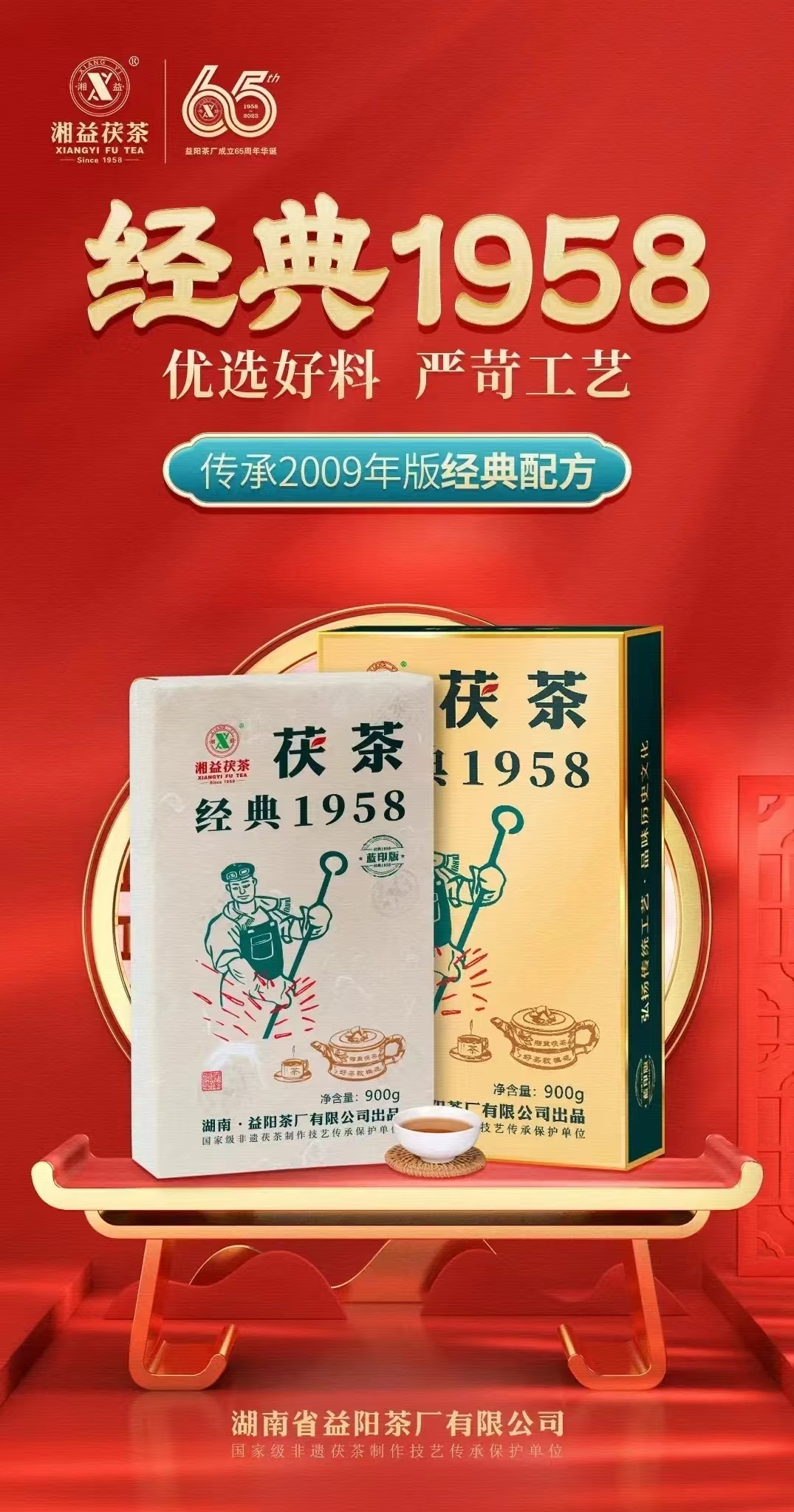 既是復刻產(chǎn)品,它就一定傳承了2009年版〖經(jīng)典1958茯茶〗的配方。在傳承傳統(tǒng)配方的基礎(chǔ)上,劉大師用更為精進的工藝將不同的原料進行合理的重組融合,使茶葉內(nèi)含物質(zhì)進行"優(yōu)勢互補",達到茶品口感更具豐富性。