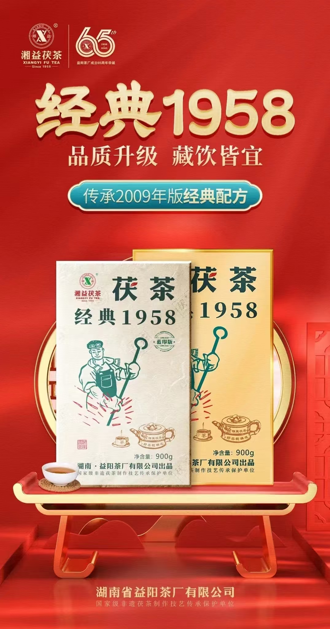 〖經(jīng)典1958(藍?。┸虿琛窖永m(xù)了之前經(jīng)典古樸的包裝風格。茶磚采用湘益食品級防偽綿紙精心呵護,層層保護茶葉本真。其環(huán)保性和透氣性更利于茶品后期持續(xù)轉(zhuǎn)化升華。