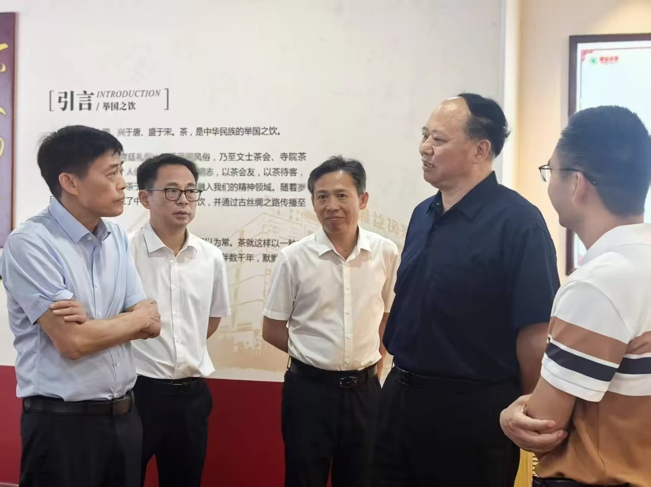 在董事長彭雄根、總經(jīng)理余智勇、國家級(jí)非遺傳承人劉杏益及副總經(jīng)理姚永軍的陪同下,調(diào)研組深入茯磚茶生產(chǎn)車間,觀摩了原料篩選、壓制、發(fā)花等核心工藝環(huán)節(jié)。文富恒主任委員在被譽(yù)為“茯茶靈魂”的“金花酵庫”,詳細(xì)詢問了冠突散囊菌群的培育技術(shù)與品質(zhì)控制標(biāo)準(zhǔn),對(duì)益陽茶廠在堅(jiān)持傳統(tǒng)工藝基礎(chǔ)上推進(jìn)標(biāo)準(zhǔn)化、規(guī)?;a(chǎn)的實(shí)踐給予高度評(píng)價(jià)。隨后,調(diào)研組一行走進(jìn)湘益茶博館,通過歷史文獻(xiàn)、制茶器具及茯茶實(shí)物,系統(tǒng)了解茯磚茶發(fā)展脈絡(luò)和公司的發(fā)展歷程。