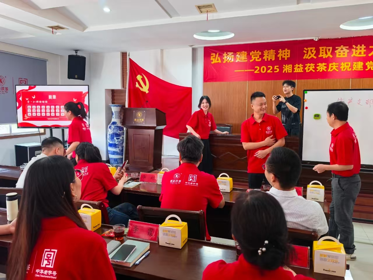 7月1日,在黨的104周年華誕這個特殊的日子里,湘益茯茶全體黨員精神抖擻地齊聚公司6樓會議室。在生產(chǎn)支部書記安茂強的帶領(lǐng)下,全體黨員高舉右拳,面向鮮紅的黨旗莊嚴宣誓。鏗鏘有力的誓言在會場回蕩,仿佛穿越時空,喚醒了每位黨員入黨時的赤誠初心。這一刻,信仰的力量在胸中激蕩,奮斗的熱情在心中燃燒。